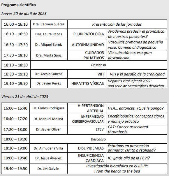 Fecha y lugar de las jornadas: 20 y 21 de abril de 2023, Salón de Actos del Hospital Universitario de La Princesa. c/ Diego de León, 62. Madrid