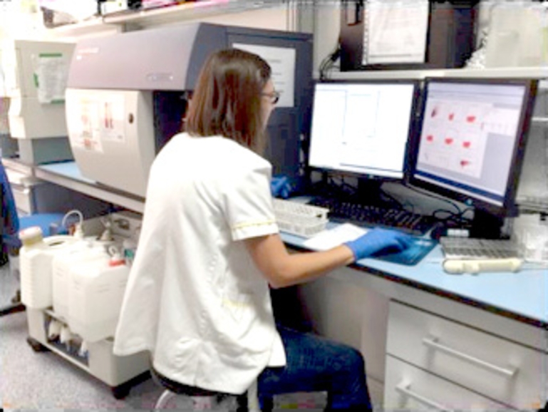 Equipado con 2 láseres (488nm y 633nm). Puede medir simultáneamente 4 fluorescencias, además de tamaño y complejidad.